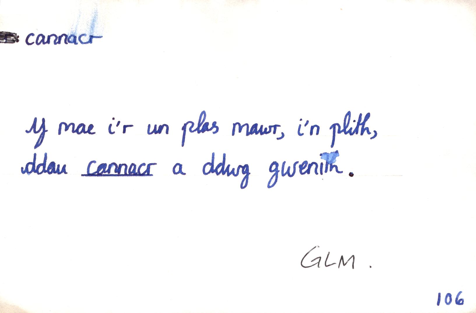 Y mae i'r un plas mawr, i'n plith, / ddau cannacr a ddwg gwenith.